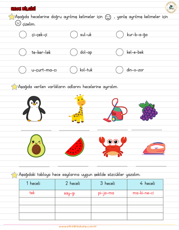 Hece Bilgisi Çalışma Kağıdı 2 Sayfa