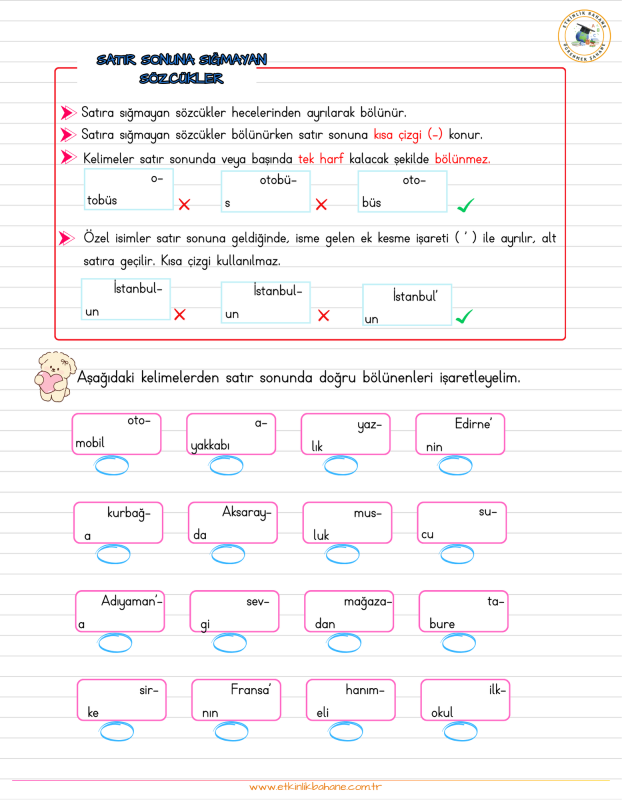 Hece Bilgisi Çalışma Kağıdı 2 Sayfa