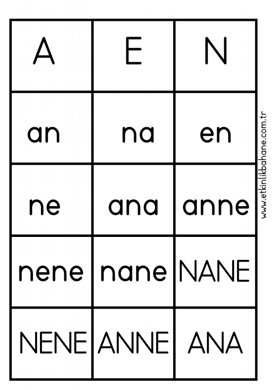 A E VE N Sesi Hece ve Kelimeleri Pano Defter Etkinlikleri