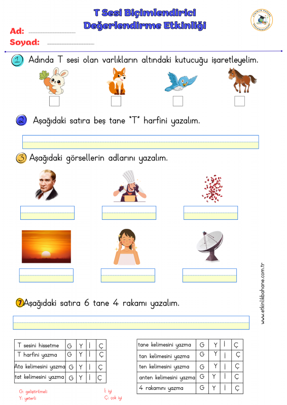 T Sesi Biçimlendirici Değerlendirme Etkinliği