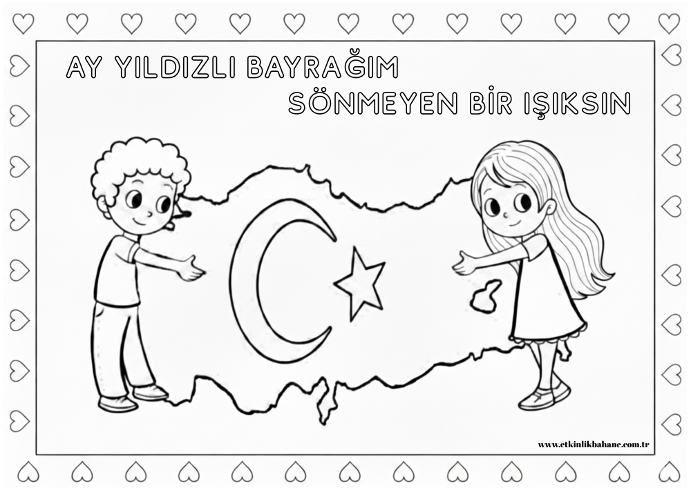 Bu sayfada, ülkemize olan sevgimizi ve bağlılığımızı ifade edebilmemiz için hazırlanan özel boyama sayfalarını bulabilirsiniz. Çocuklar ve yetişkinler için uygun olan bu sayfalar, yaratıcılığınızı kullanarak bayrağımızın güzelliğini renklendirmenize olanak tanır. Her bir çizim, milli değerlerimizi ve birlik duygumuzu pekiştirecek şekilde tasarlanmıştır. Eğlenceli ve eğitici bir aktivite arıyorsanız, bayrak sevgisini yaşatan bu boyama sayfaları tam size göre