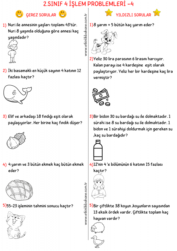 2.Sınıf problemler - Çerez ve Yıldızlı Sorular 2